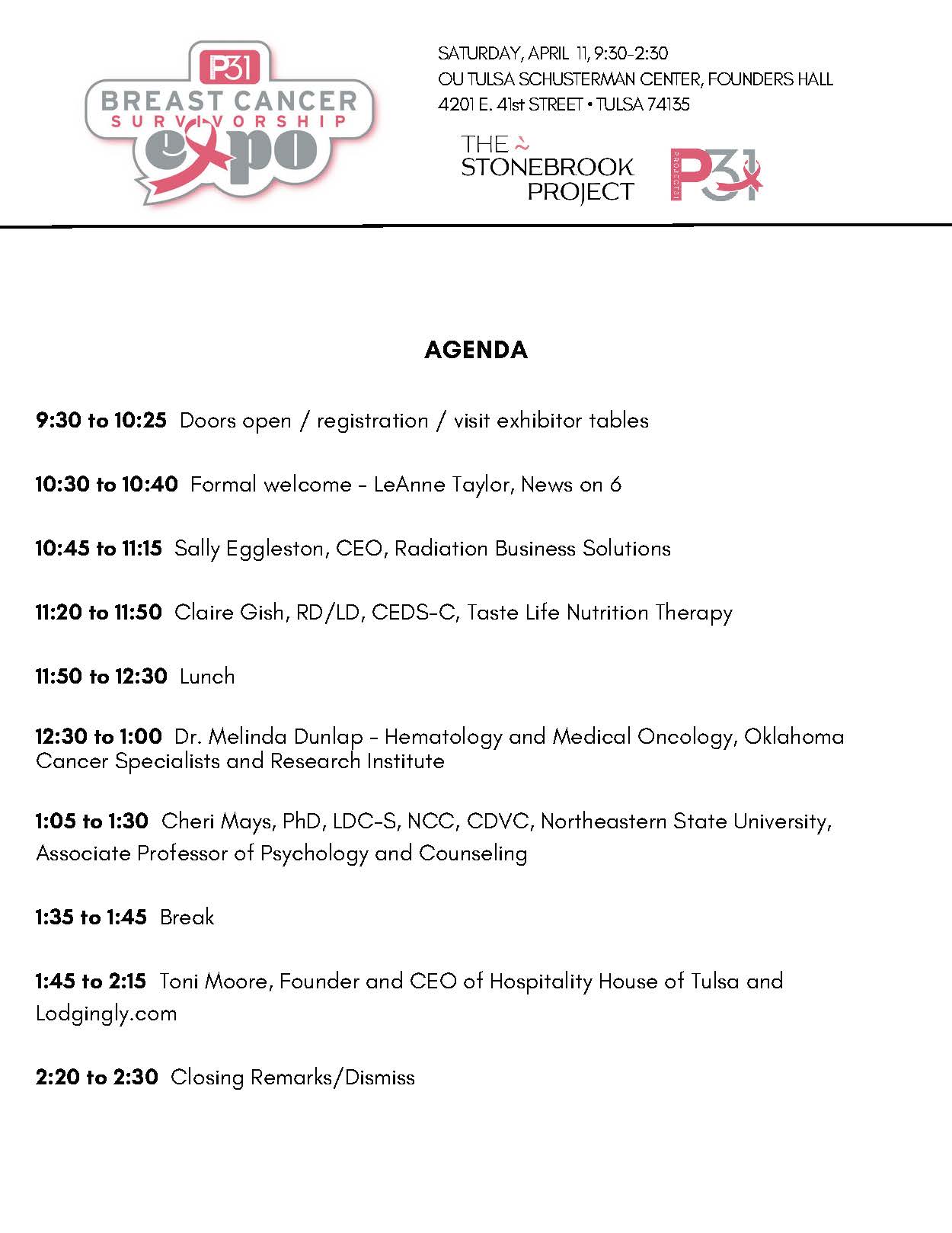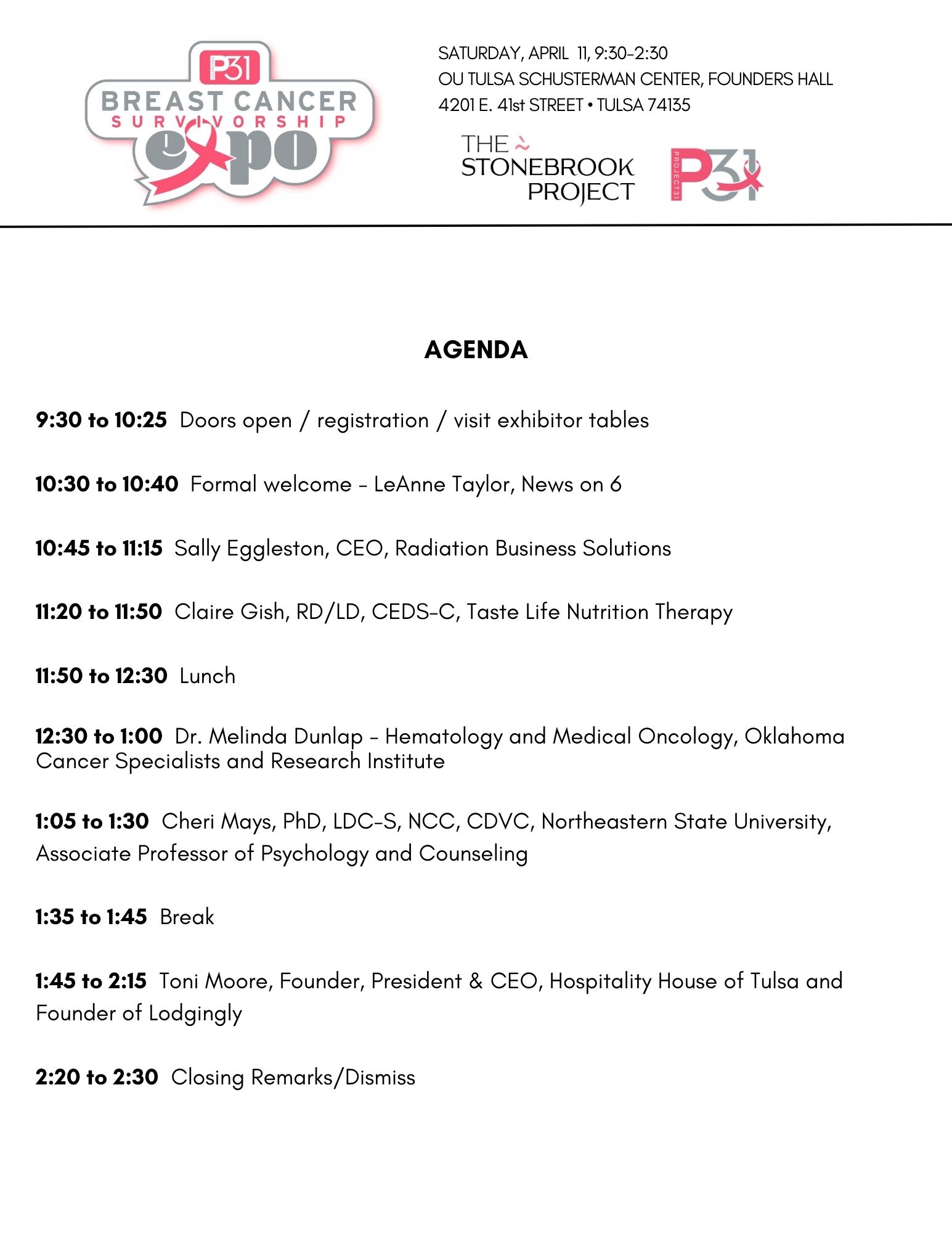Join us for our second SURVIVORSHIP EXPO in Tulsa! We welcome all survivors and their guests (ages 18 and up) for a full day of learning and sharing. We will have presentations from guest speakers on a variety of topics, including: